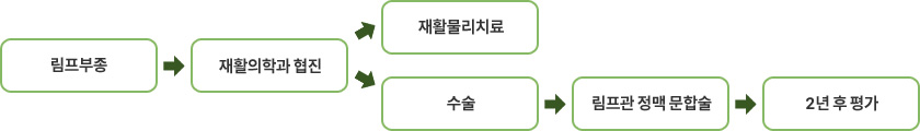 림프부종 수술은 초기 단계에서 효과가 크다고 알려져 있습니다. 림프부종이 많이 진행되면, 림프관에 손상이 동반되어 정맥과 연결 해놓더라도 림프액이 잘 빠지지 않기 때문입니다. 또한, 림프부종 수술이 얼마 전부터 건강보험이 적용되어 수술적 치료의 대상이 점점 넓어지고 있습니다. 수술에 대한 상담을 위해 내원하시면, 본원의 재활의학과와 협진 하여 수술 가능 여부에 대해 자세히 안내해 드리겠습니다.